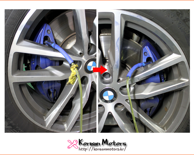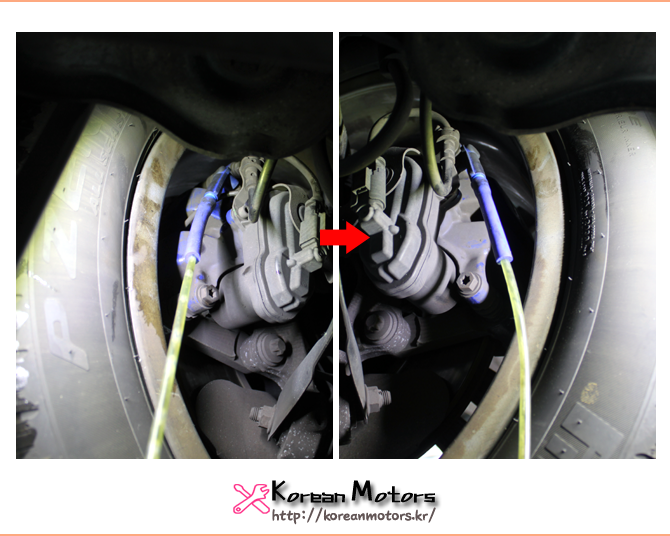 안과 밖, 양쪽으로 브레이크 오일을 교환 완료하였습니다