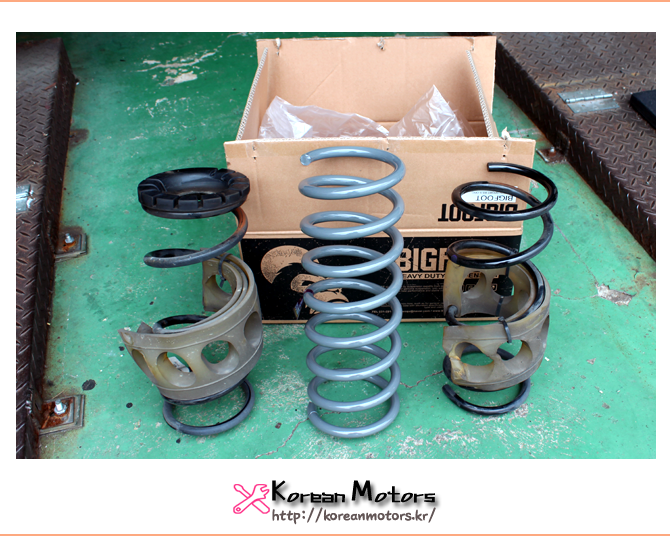 기존의 리어 스프링을 빅풋 리어스프링으로 장착하였습니다
