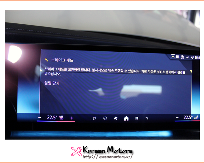 브레이크 패드를 교환해야 한다는 경고 알림이 확인되었습니다