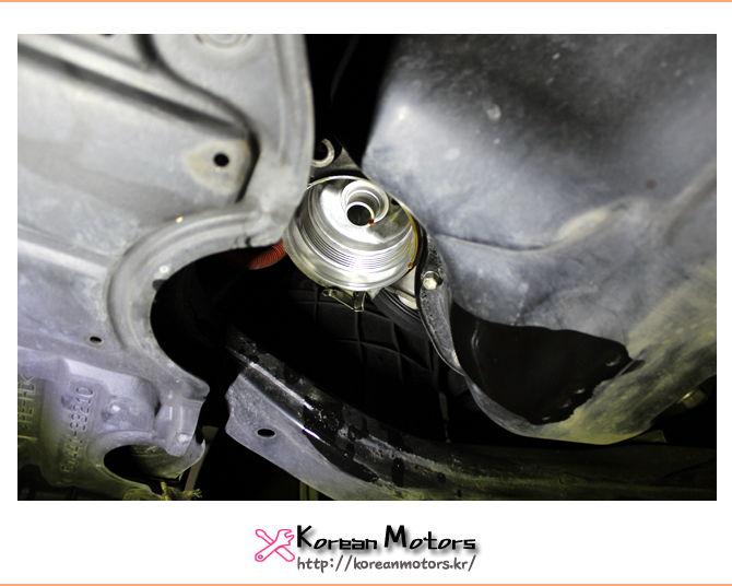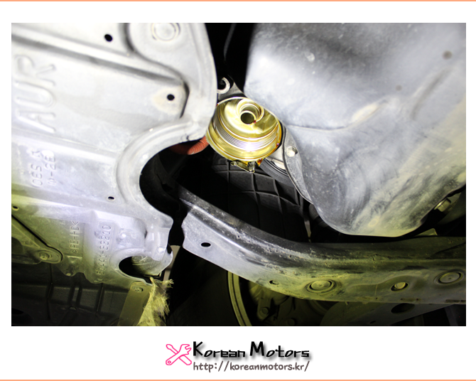해당차량을 리프트하여 기존의 오일필터 제거하고 신품으로 장착하기 위해