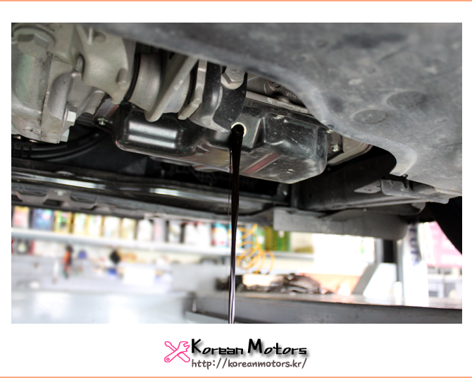 차량을 리프트하여 내부의 엔진오일을 드레인해줍니다