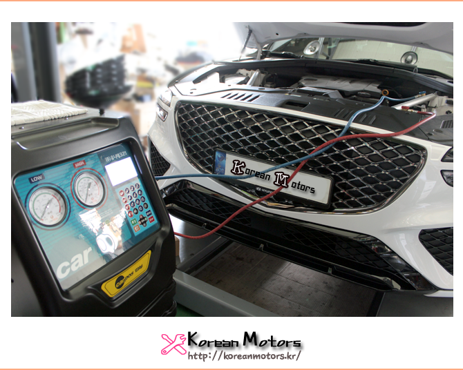 GV70 2.5가솔린 차량이 에어컨냉매를 충전하기 위해 입고해주었습니다