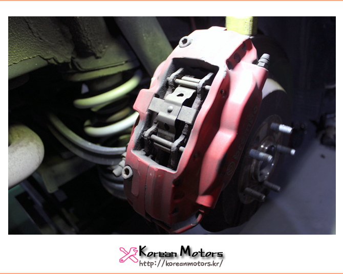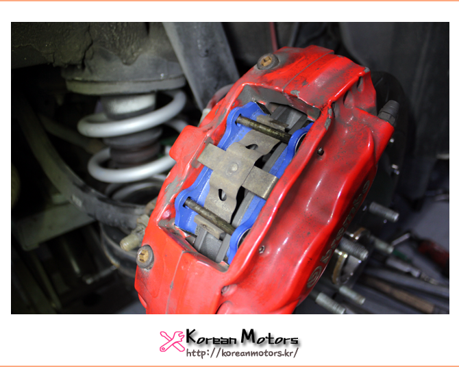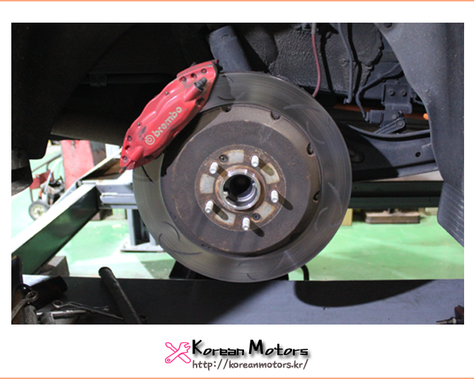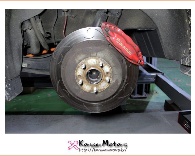 브레이크 디스크와 패드를 교체하기 위해 코리언모터스에 입고해주었습니다