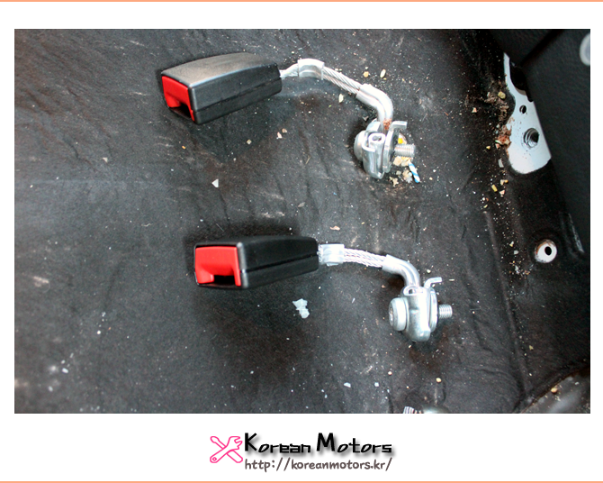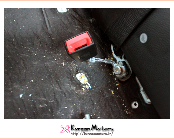 뒷좌석 시트를 탈착하여 교환해 줄 안전벨트 버클을 탈거합니다