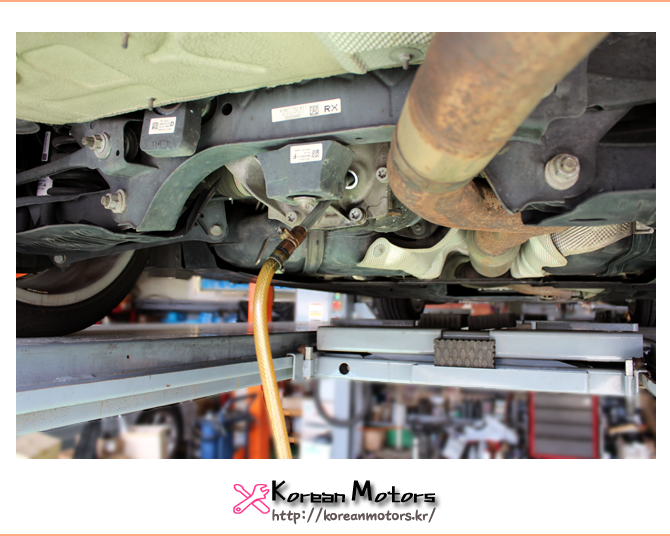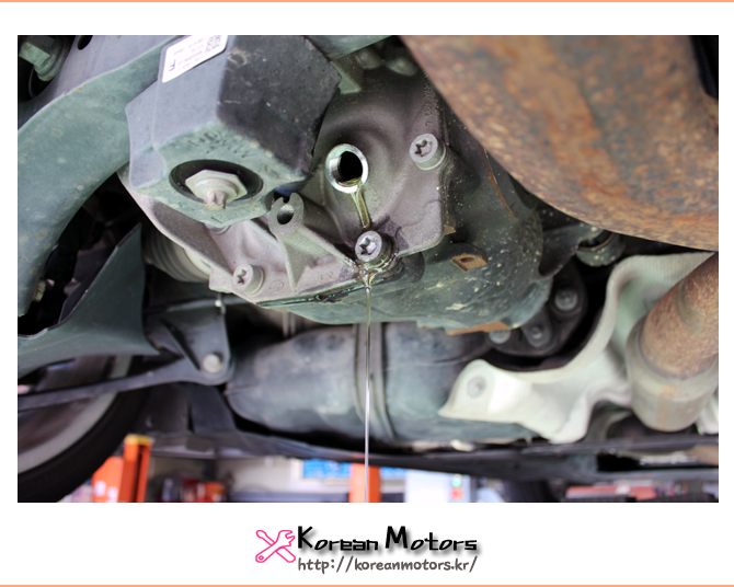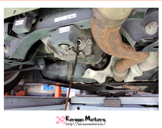 후륜 디퍼런셜 오일의 경우 주입구와 배출구가 같기 때문에 전용 장비를 이용하여