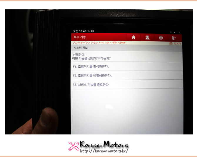 전자식 파킹 브레이크 압력을 해제하고 작업을 진행합니다