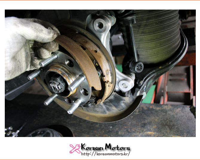 교체를 위해 브레이크 슈를 탈거해주었습니다