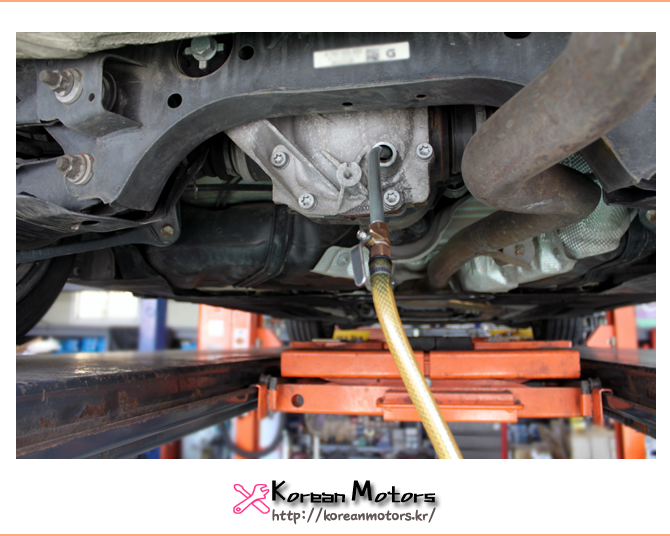 디퍼런셜오일 교체를 위해 차량을 리프트해주었습니다