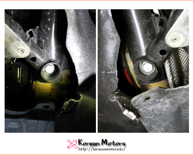 차량 하부에는 여러개의 볼트와 차량이 이어져있습니다