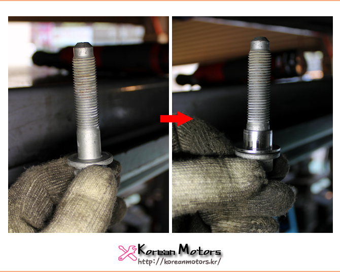 볼트를 빼내고 부싱킷을 장착,