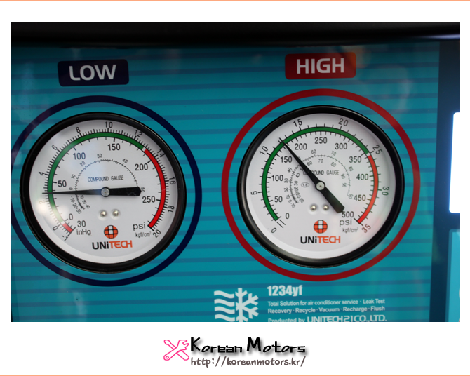 해당 차량의 가스량과 냉동오일을 확인해줍니다