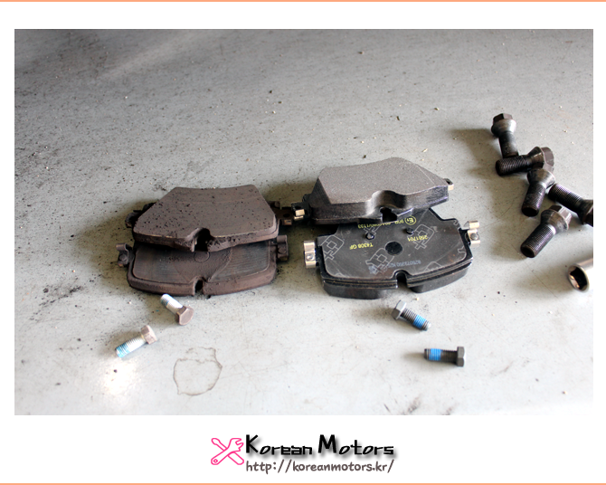 <좌> 탈거한 고품 브레이크 패드
