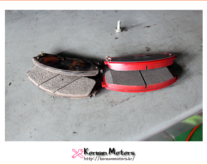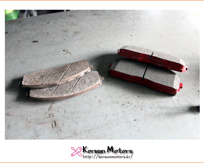 <좌> 탈거한 고품 브레이크 패드