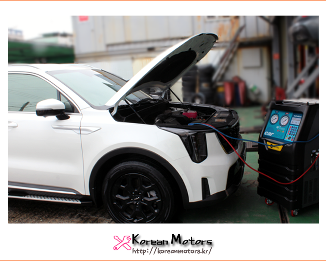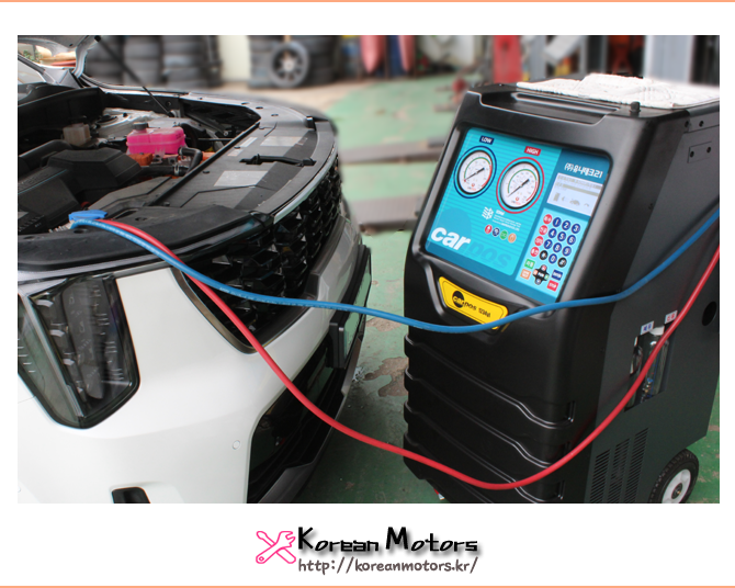 해당차량에 맞는 냉매와 오일량 점검,
