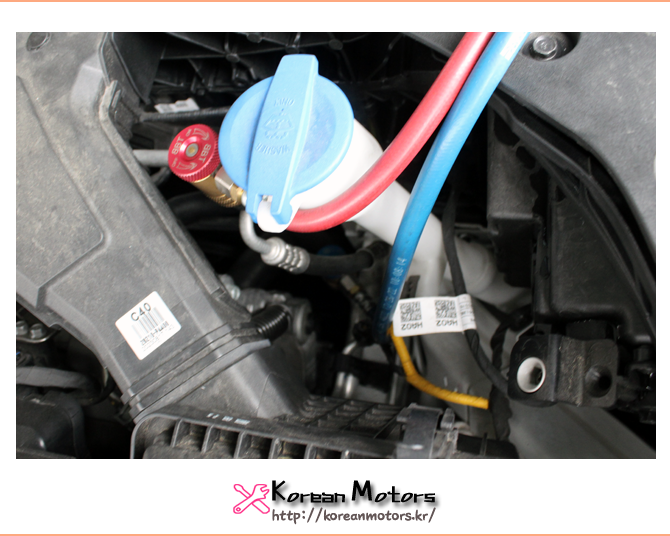 에어컨 라인을 깨끗하게 한 뒤 충전 진행합니다