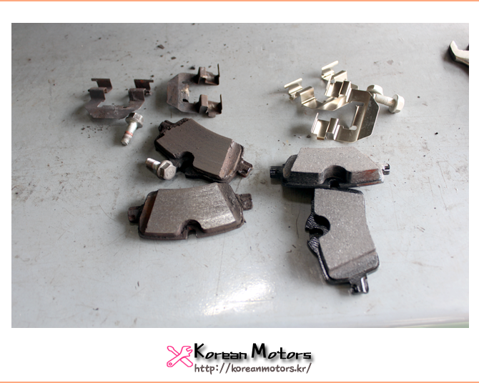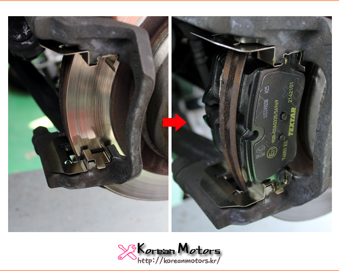 리어 브레이크패드와 센서는 텍스타로 장착합니다