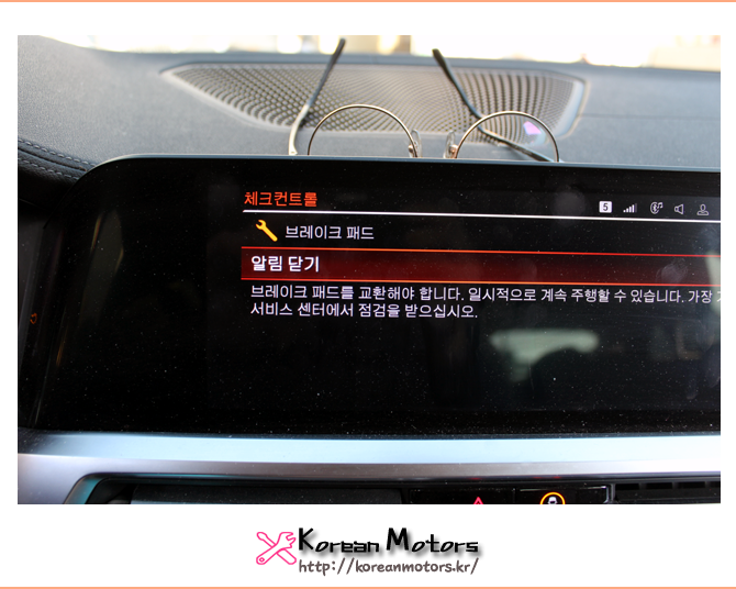 체크컨트롤 브레이크 패드 경고등 알림이 확인되었습니다