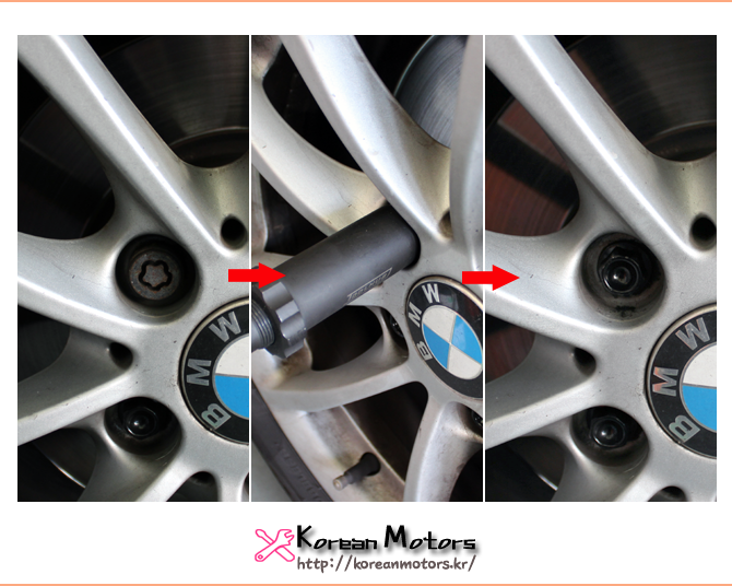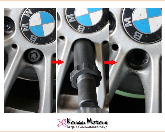 조수석의 락볼트도 탈거한 자리에 일반휠볼트를 장착하고